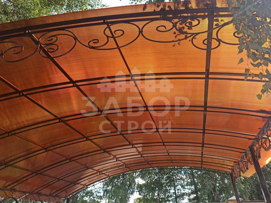 Поэтому компания "Навес Строй" настоятельно рекомендует не экономить, а усилить каркас кованого навеса более жёсткими профилями с увеличенной толщиной металла и количеством несущих ферм.