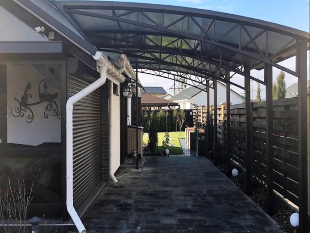 Поэтому компания "Навес Строй" настоятельно рекомендует не экономить, а усилить каркас навеса для дома более жёсткими профилями с увеличенной толщиной металла и количеством несущих ферм.